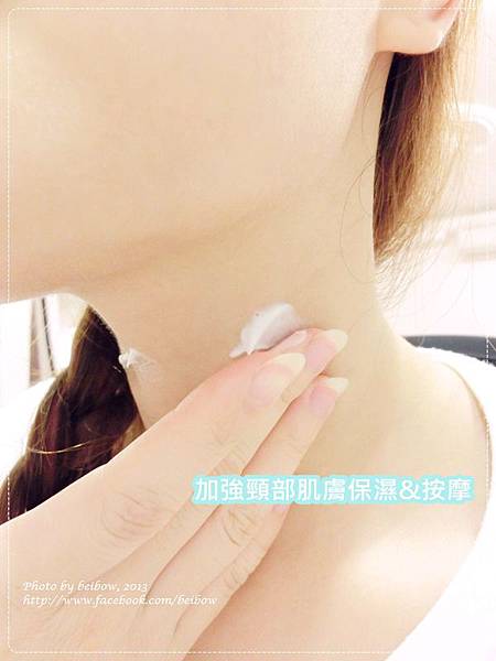 最後頸部肌膚也不要忘了照顧喔.畢竟頸紋總是會不小心透露出女孩們的年齡小祕密啊>"<