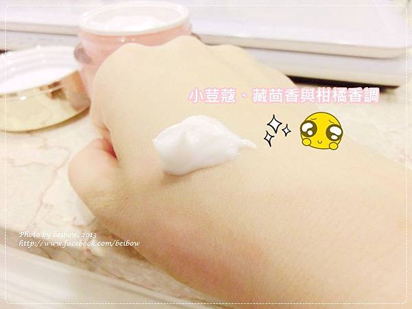 晚霜的質地是白色乳霜狀.質地非常細緻且濃稠.完全是貝寶的最愛