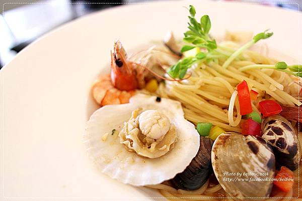 海鮮義大利麵的海鮮還算澎派.有2尾已經剝殼的蝦