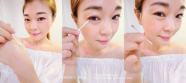 卸除眼妝的步驟.建議妞妞們可以取適量(約按壓半下的量)在卸妝棉上